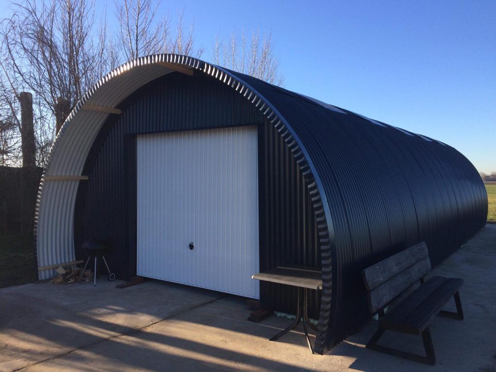 Das Dach besteht aus lackierten Wellblechen und ist auf Wunsch mit einer Anti-Tropf-Beschichtung an der Innenseite (nur im Dachbereich) ausgestattet. Diese reduziert Kondenswasserbildung und sorgt für ein verbessertes Raumklima.