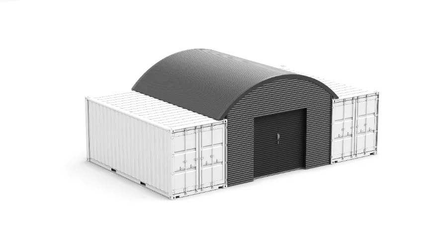 Unsere Containerüberdachung ist die ideale Lösung zur schnellen Erweiterung von Lager-, Arbeits- oder Unterstellflächen. Geeignet für 20 ft (6m) oder 40 ft (12m) Container, entsteht zwischen zwei Containern eine stabile, wettergeschützte Überdachung mit einer Breite von 5,00 m und einer Firsthöhe von 3,95 m.